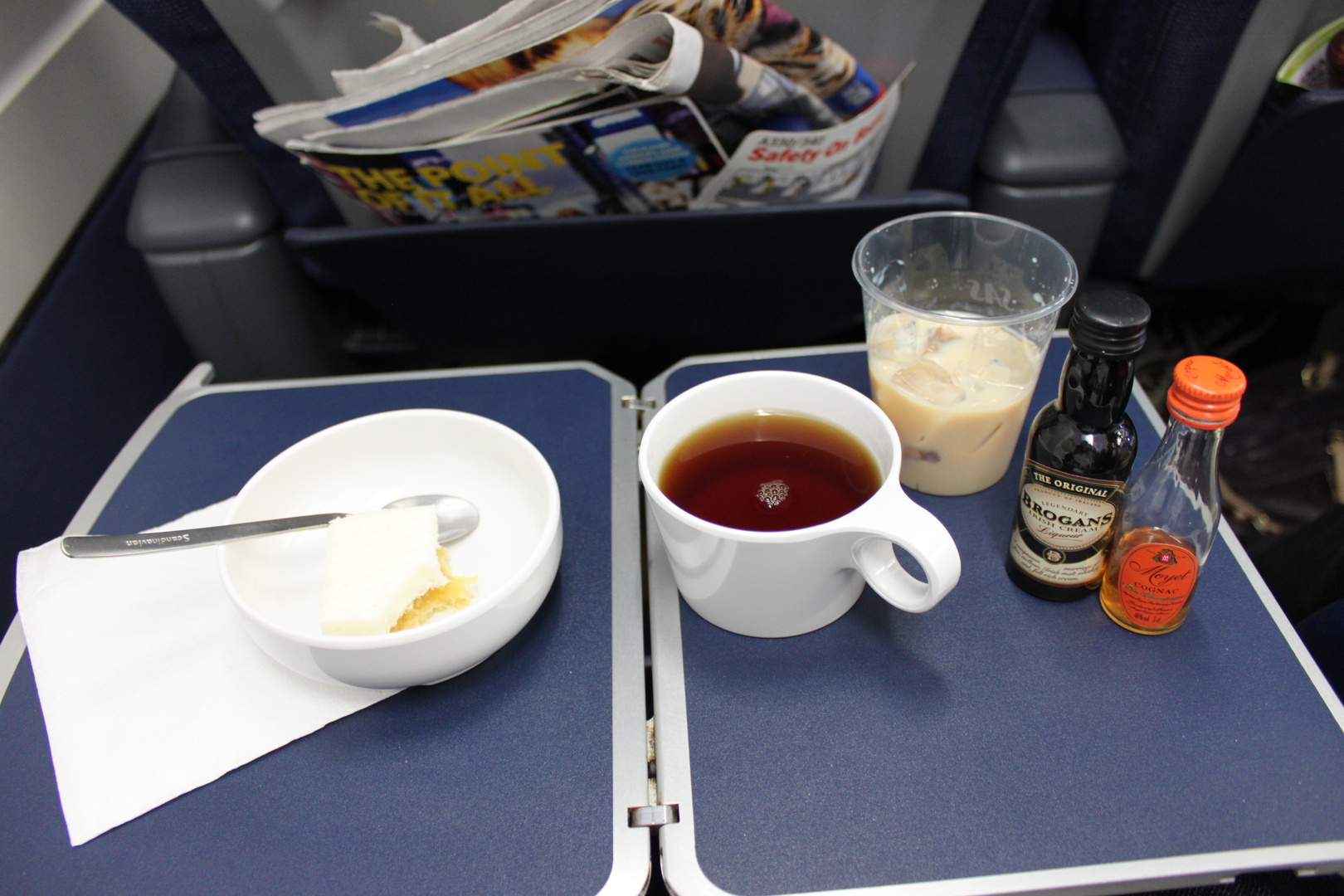 Vid 6-tiden serverades en efterlängtad varm handduk och apelsinjuice. Frukosten bestod av lite kallskuret, yoghurt, juice och varm dryck.