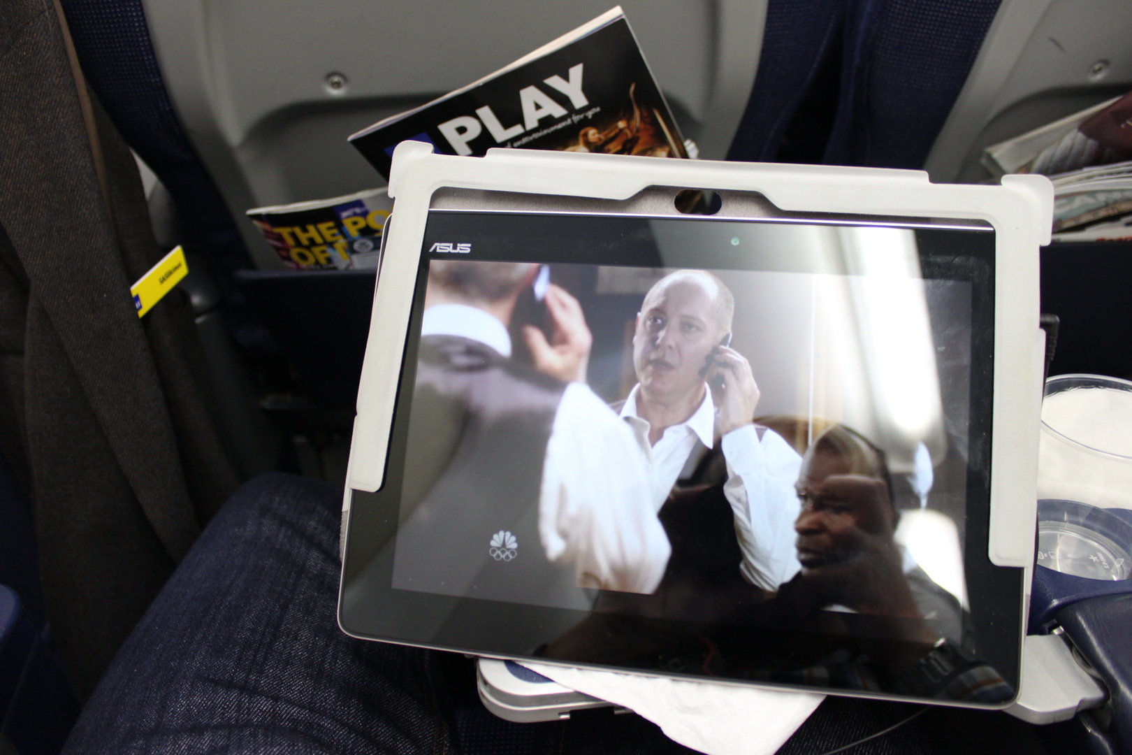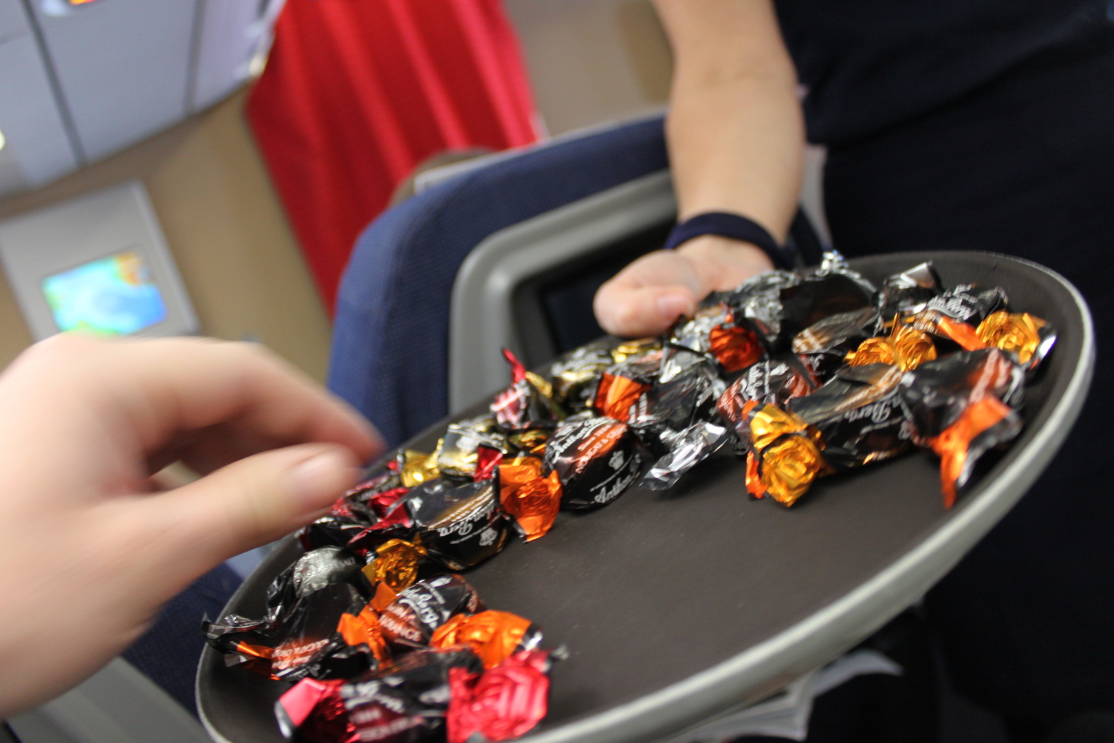 Efter maten blev det film och serier på surfplattan. IFE-skärmen var liten och svarade ganska dåligt på tryck. Ljudet var katastrof så jag gav upp ganska snabbt. Beställer in en öl och lite chips. Praktiskt med cupholder i armstödet och loungeläget (det vill säga max lutning) som uppskattades för filmkollandet. Flygvärdinnorna gick regelbundet genom kabinen med vatten, juice och andra drycker. Vid ett tillfälle hade de även en bricka choklad.