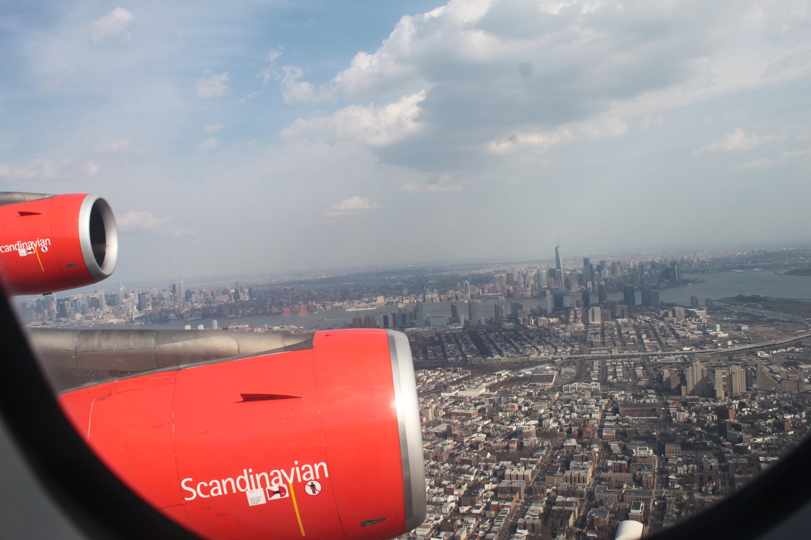 Inflygningen görs parallellt med Manhattan som bjuder på en vacker vy.