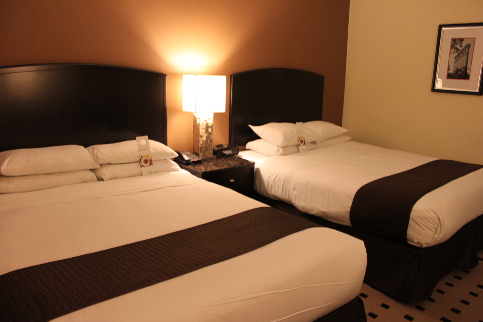 Väl framme på hotellet upptäcker jag att det inte alls är lika maffigt som jag hade tänkt mig, men läget är kanon. Kommer fram och ska checka in och ber om Club Carlsson Gold-uppgraderingen. De har uppgraderat mig, men de har inget rum ledigt för än om 3 timmar. Alternativet är ett rum utan uppgradering. Bestämmer oss för att vänta, en uppgradering säger man ju aldrig nej till. Eller? Får drinkvouchers för Café Martinique. Äter en burgare och kommer tillbaka till receptionen vid 20, som avtalat. Inget rum än. Får vänta ytterligare en timma innan rummet är klart. Åker upp på 18:e våningen, även kallad Penthouse 2, och får ett... ja något excecutive rum känns det inte som. Två sängar, badrum, tv, garderob.