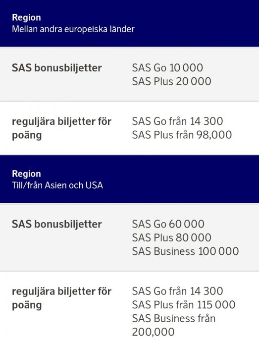 Det är väl heller inte enda felet. "SAS bonusbiljetter mellan andra europeiska länder" ska väl heller inte vara Go 10 000/Plus 20 000?