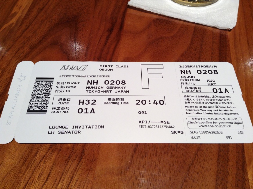 Bonusprogram: Lufthansa Miles&More Flygbolag: ANA (NH) Kabinklass: Economy Antal poäng: 25.000 miles Skatter&avgifter: 3 EUR När: juli 2013 Bokad: juni 2013