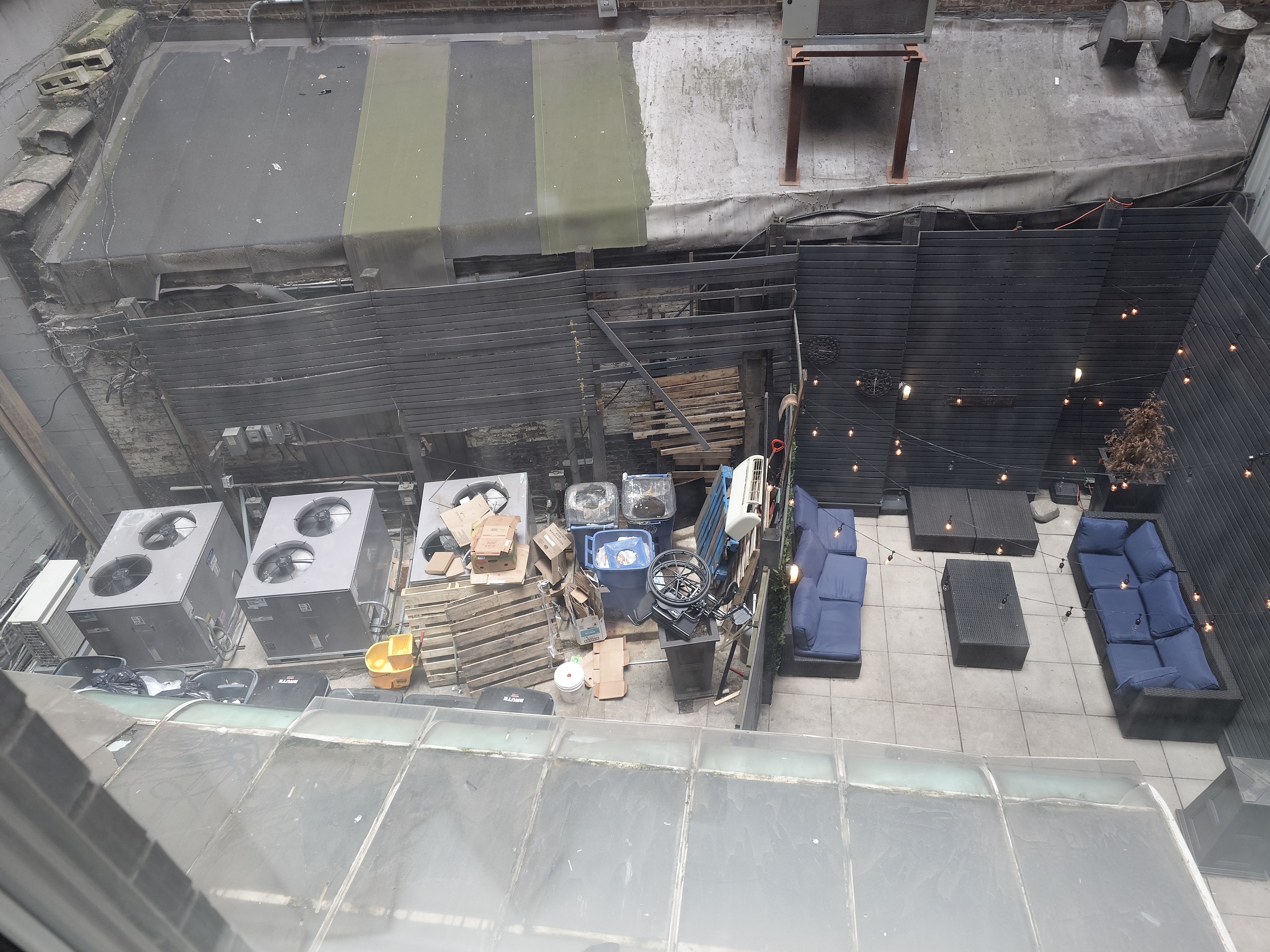För Manhattan är det där rena rama lyxet!Hej från Hampton Inn Madison Square Garden, med en mycket charmig uteservering.