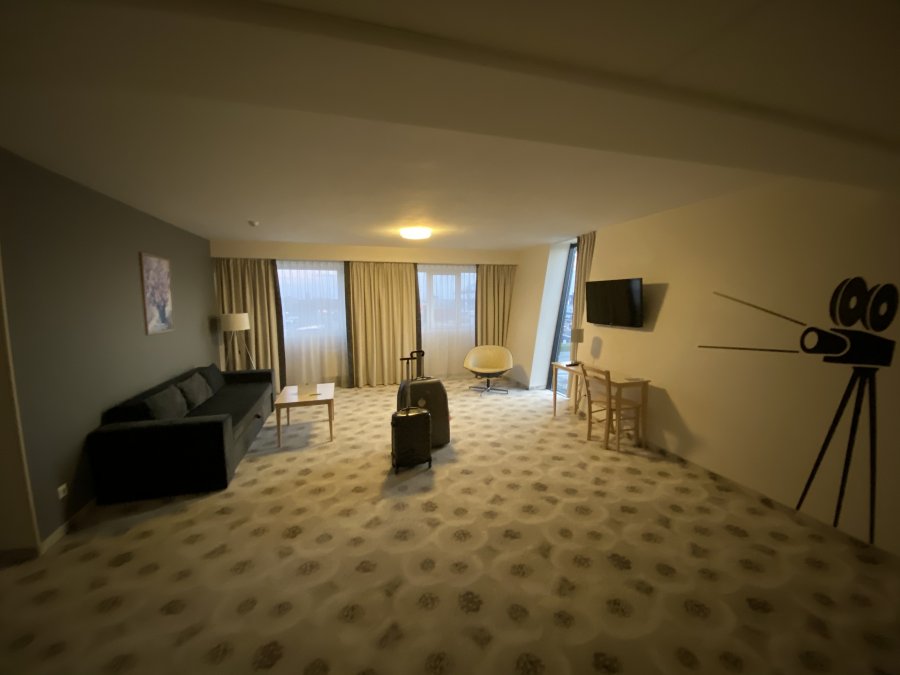 Påminner mig om en svit jag fick på Mercure Alexanderplatz i Berlin för många år sedan. Minus utsikten då förstås. Hade inte ens en glimt till Fehrnseheturm...Utsikten är väl ok från sviten..