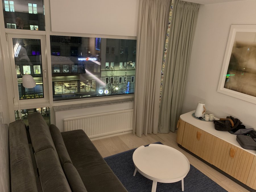 Vasagatan utanför rutan på Nordic Light ...inte mycket till utsikt, trots tacksamt läge, men däremot otroligt fräscht rum.