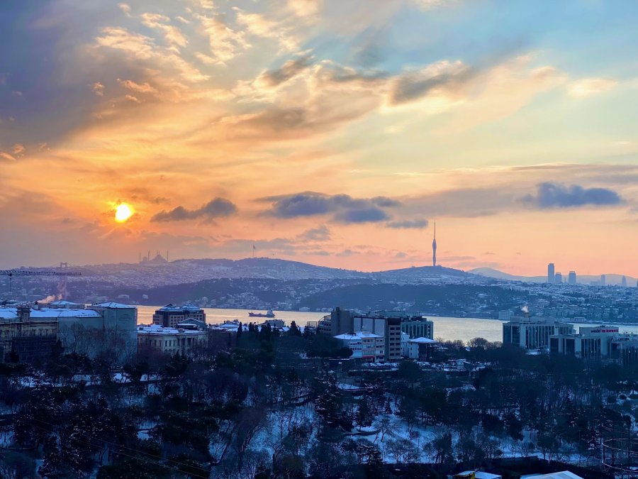 Soluppgång över Bosporen från Hilton Istanbul Bosphorus
