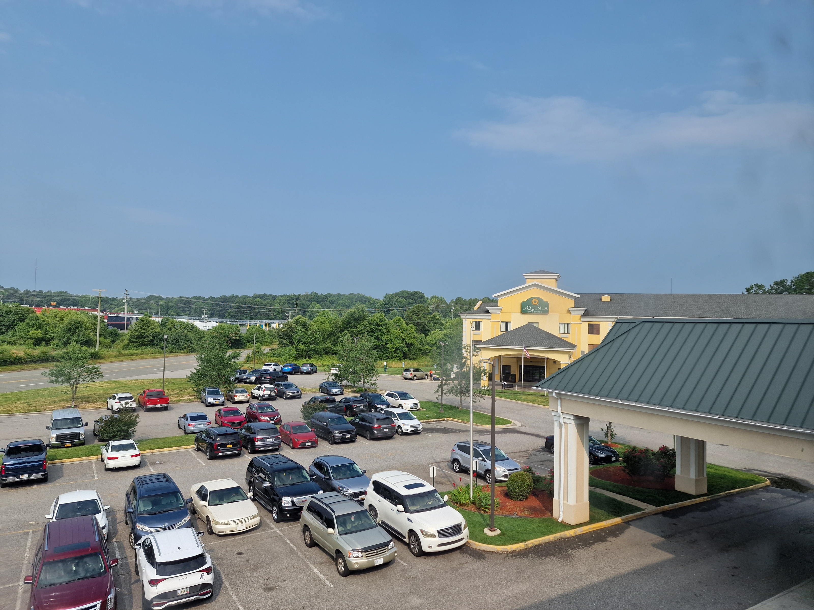 Gomorron från Country Inn Doswell, Virginia. Här bor man för närheten till King's Dominion (skymtas till vänster genom det smutsiga fönstret). Inga andra fördelar finns. Om man inte är väldigt godstågsintresserad eftersom spåret ligger några meter ifrån byggnaden på andra sidan vilket hörs, och ibland känns, några gånger/dygn..o_O:)