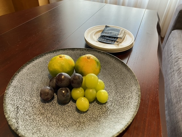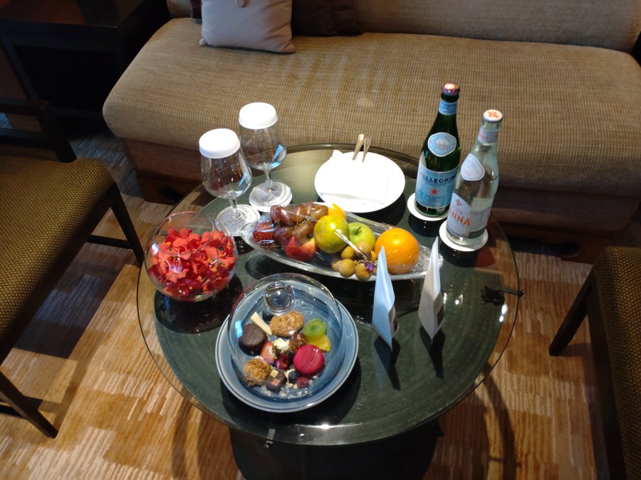 En hel välkomstbuffe väntade på rummet på Conrad Bangkok.