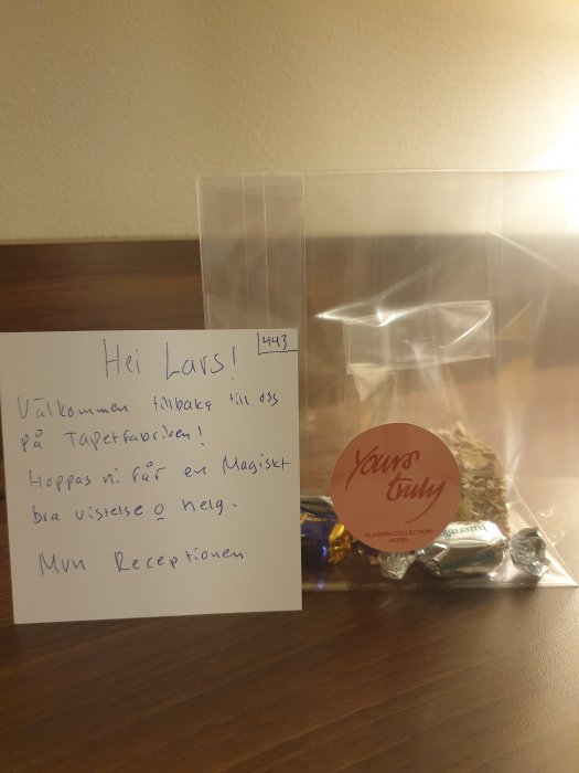 Ja, ja samma hotell samma status så här såg min välkomst gåva ut!