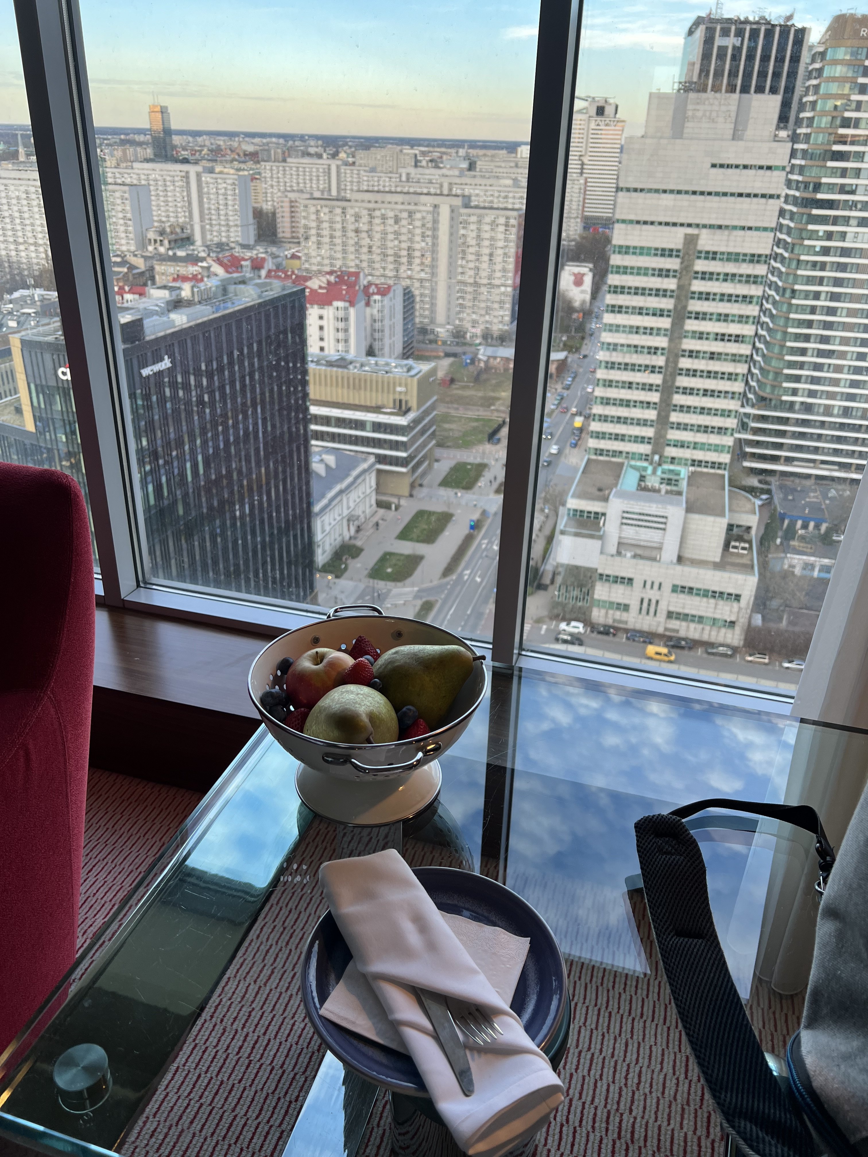 Superfräscht. Frukten sköljd och nu får den luft från alla håll, dvs. ruttnar inte.Trevlig diamond recognotion på Hilton i Warszawa, två drink vouchers vid incheckning.