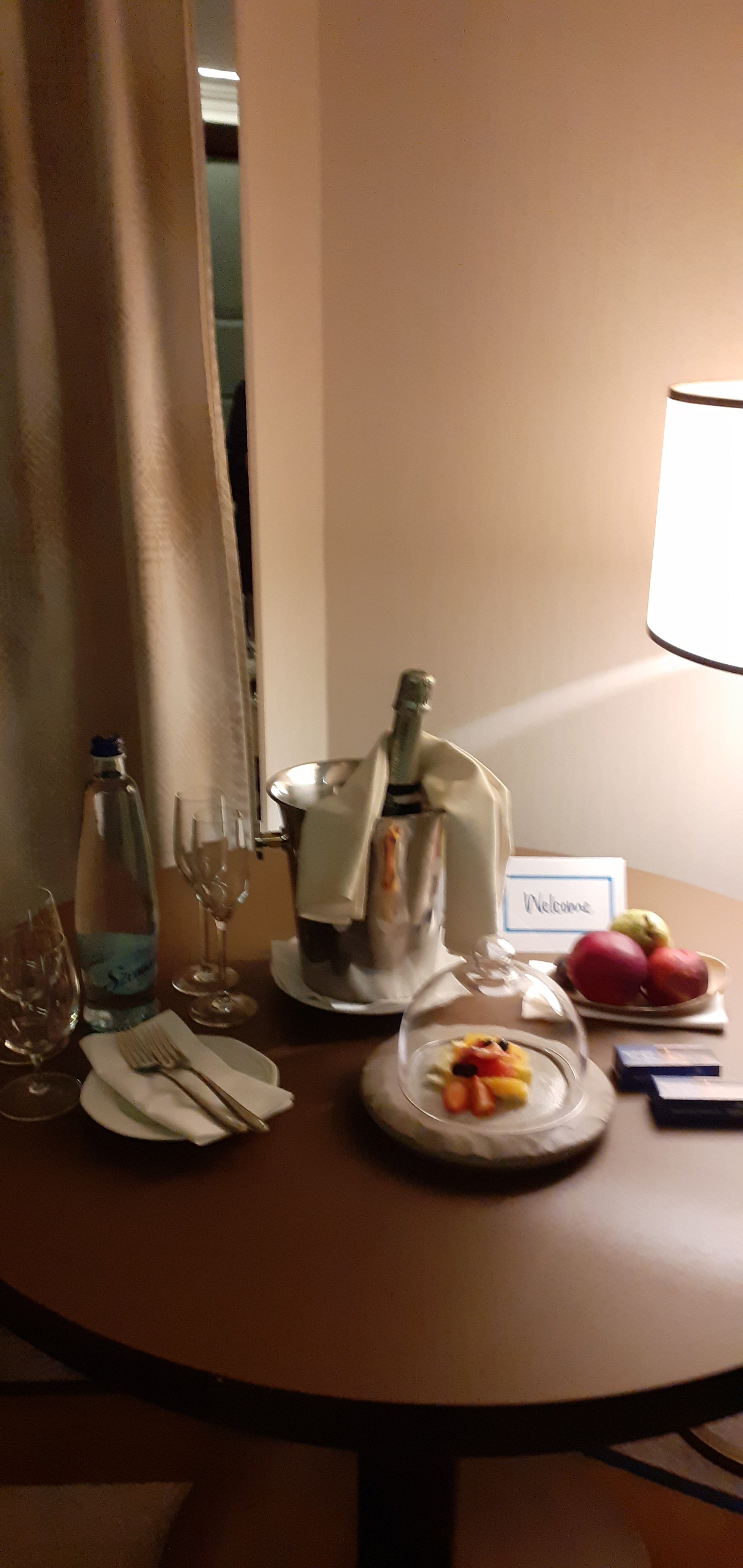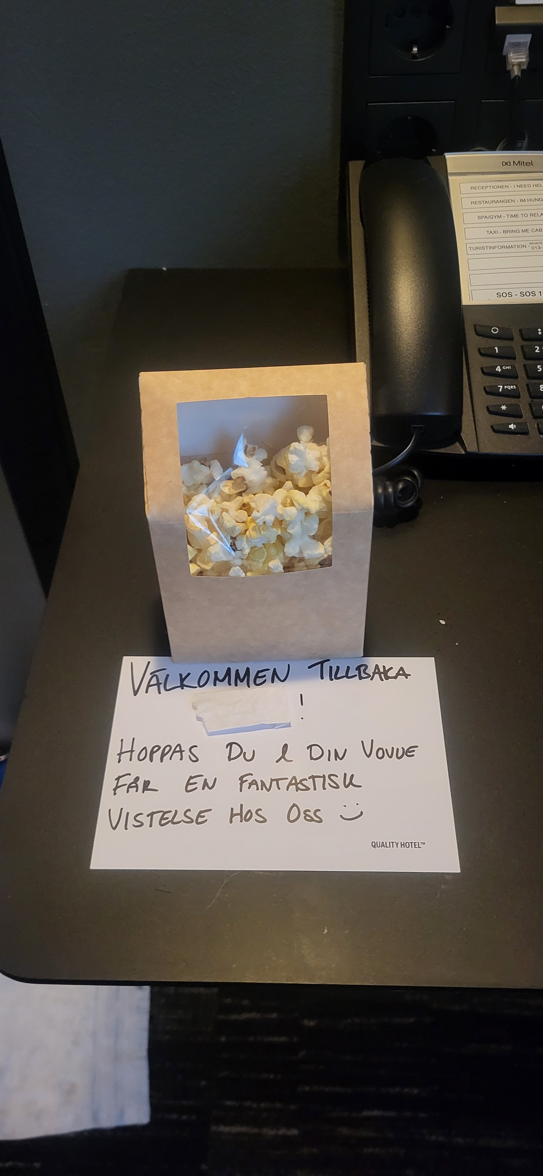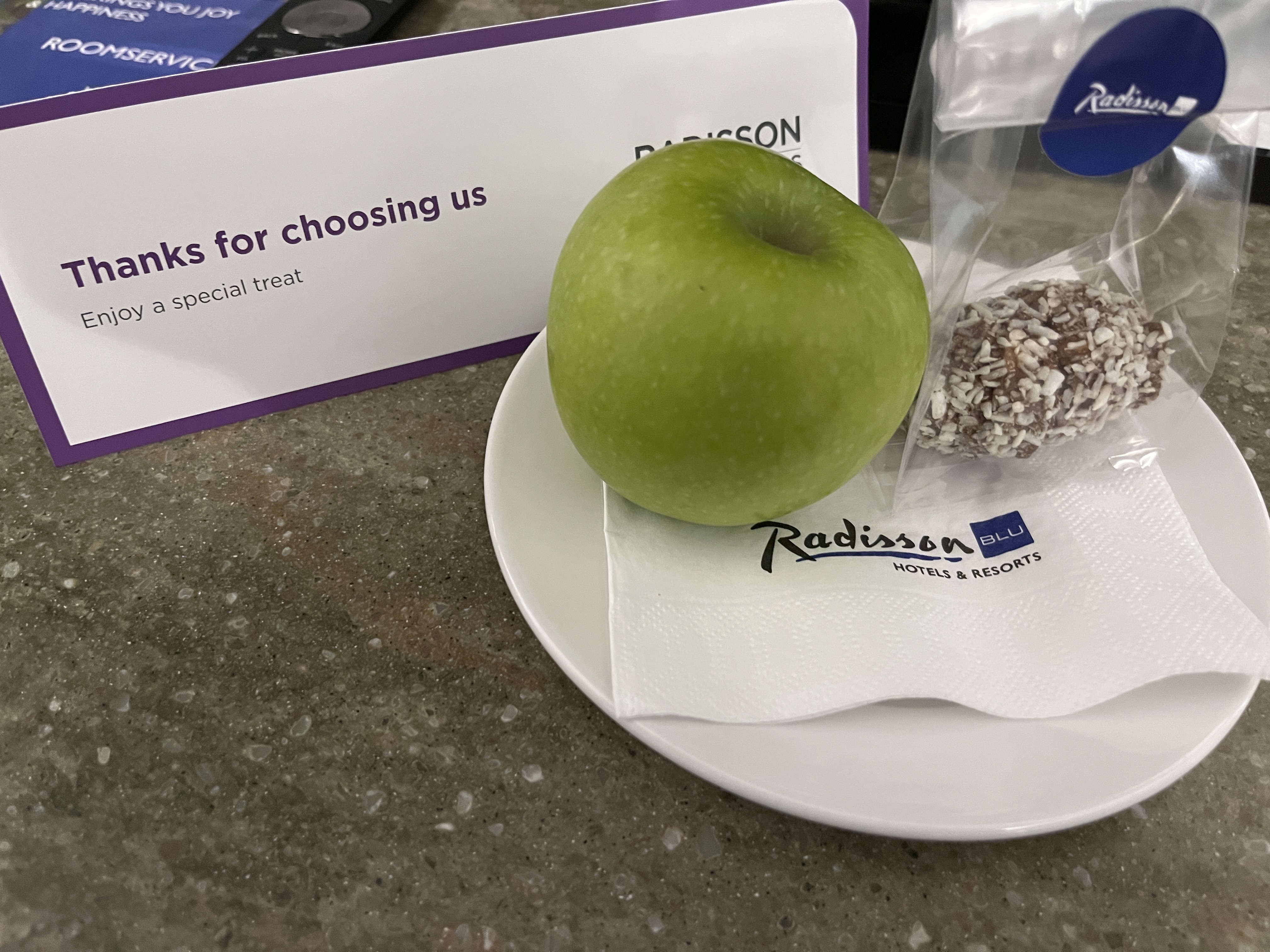 Jag fick ett välkomstbrev och tre små lokala kakor som välkomsthälsning. Men idag hände något jag aldrig tidigare upplevt när jag gick till frukosten. Damen vid ingången bekräftade med mig att jag reste hem idag – och efter en kort stund kom de med en avskedskaka och 4–5 av personalen för att önska mig en trygg resa hem.
