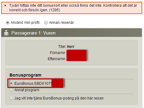 Hej, det går för mig ej att boka resa på SAS då jag har fått prefixet EBD istället för EBG i min profil (måste hänt idag?). Har några fler än er fått nedan problem och fel?