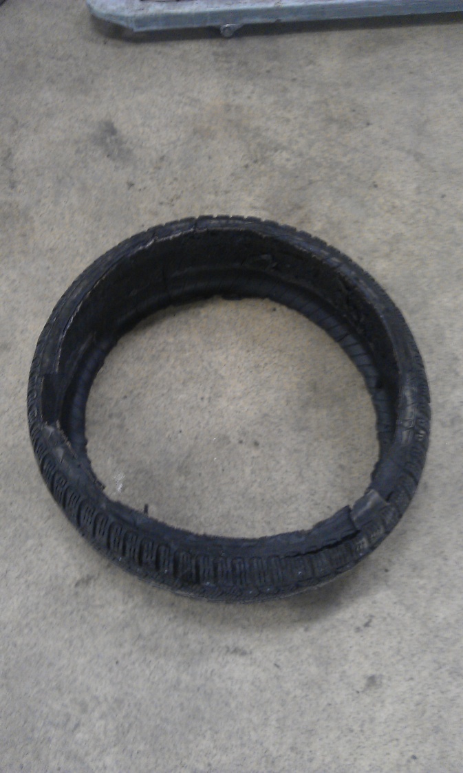 Det där är en däckseparation som knappast händer när man kör på E4. Antingen har du kört - extremt - hårt eller så var däcket helt enkelt slut (vilket det måste varit oavsett, även om du kört hårt).