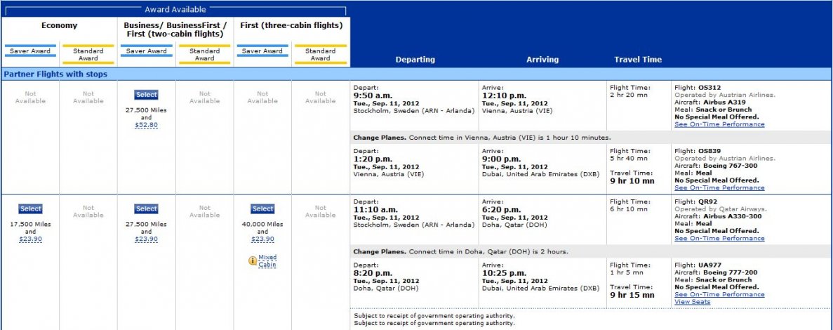 *Man kan söka/boka Star Alliance award där det ingår en hel del Star Alliance flygbolag.