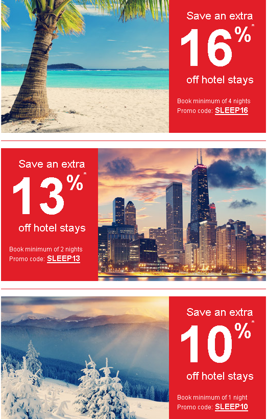 10% eller 13% rabatt på HotelClub beroende på när man övernattar. Boka senast 2014-MAY-02.