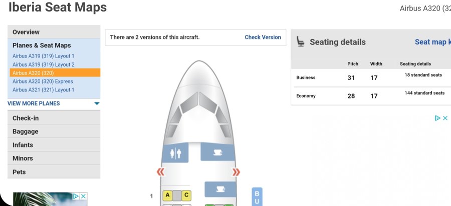 Det var precis innan pandemin i en A320 och jag fick på riktigt inte plats med benen. Det var vanliga Iberia och inte express.Det är Iberia inte Iberia Express du talar om?