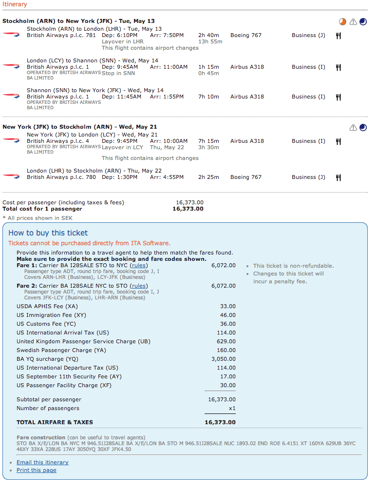 Men egentligen räcker det nog med att söka BA/AA flyg på Matrix så kommer den ju att hitta lägsta priset åt dig.