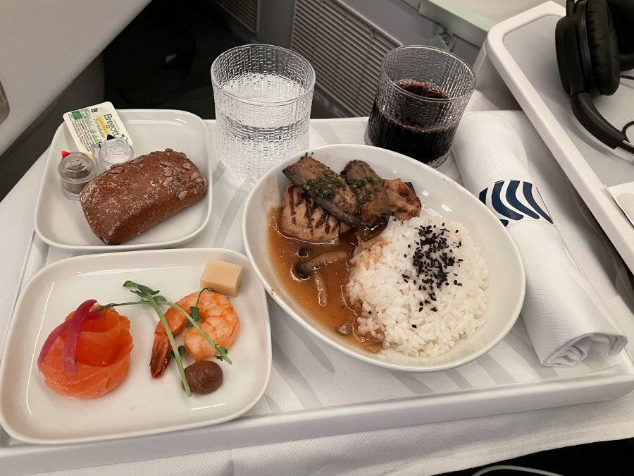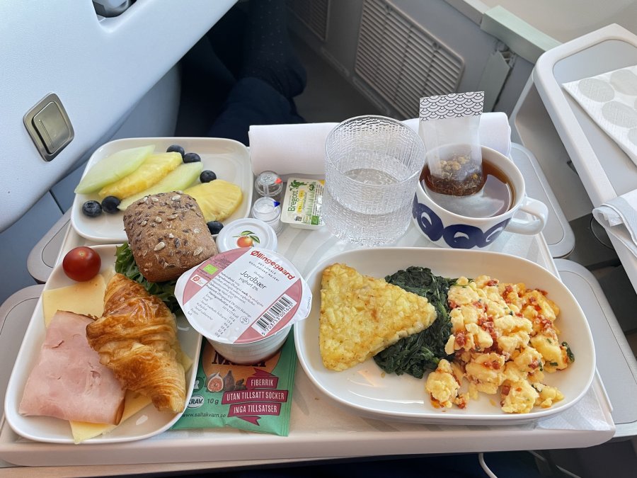 Väl på planet så upplevde jag det finska kabinpersonalen som ganska stela och militäriska. Kände inte direkt att jag fick den service som ska till med business eller kabinpersonal. Väldigt petiga personal på småsaker. Mycket påpekanden. Maten var inte direkt business heller för den delen. Ni ser själva på bilden. Väldigt små portioner, Blev inte alls mätt. Frågade om dom hade nåt mer mat, så säger dom att dom inte har extra. Inget proaktivt förslag heller vad dom kan tänka hitta på så man känner sig mätt och belåten. Ingen service minded liksom.