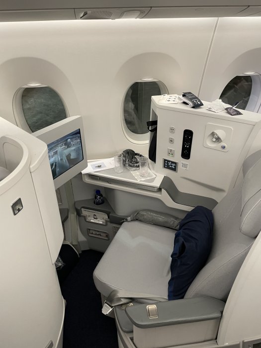 Upplever det inte riktigt som business - utan mer som premium ekonomi. Med business stolar och ekonomi service/mat. Väldigt begränsad kompetens vad gäller service, vet inte om det är den finska kulturen med självservice eller om dom helt enkelt är inkompetenta vad gäller service. Inget förslag på hur man mättar en passagerare. Inte alls imponerad. När personalen går runt så klampar dom ordentligt på golvet så man väcktes. Dom rörde sig inte alls smidiga eller lättfotade, hade inte heller alltid dragit för gardiner till ”köket” så det var rätt ljust under nattetid av flyget.