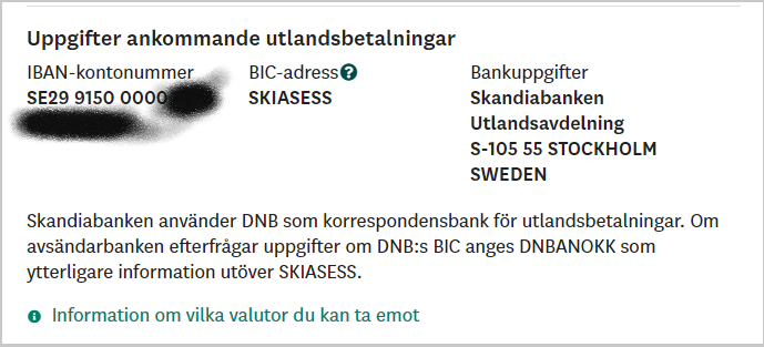 I mitt första mail svarade jag med denna information som jag hämtade från Skandiabanken, men nu efterfrågar dom clearingnummer, vilket är 9150 för Skandiabanken och sen 9-10 siffrors kontonummer vilket dom inte har.