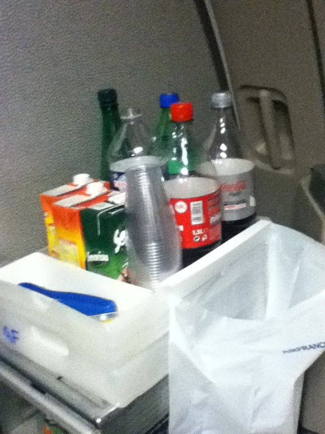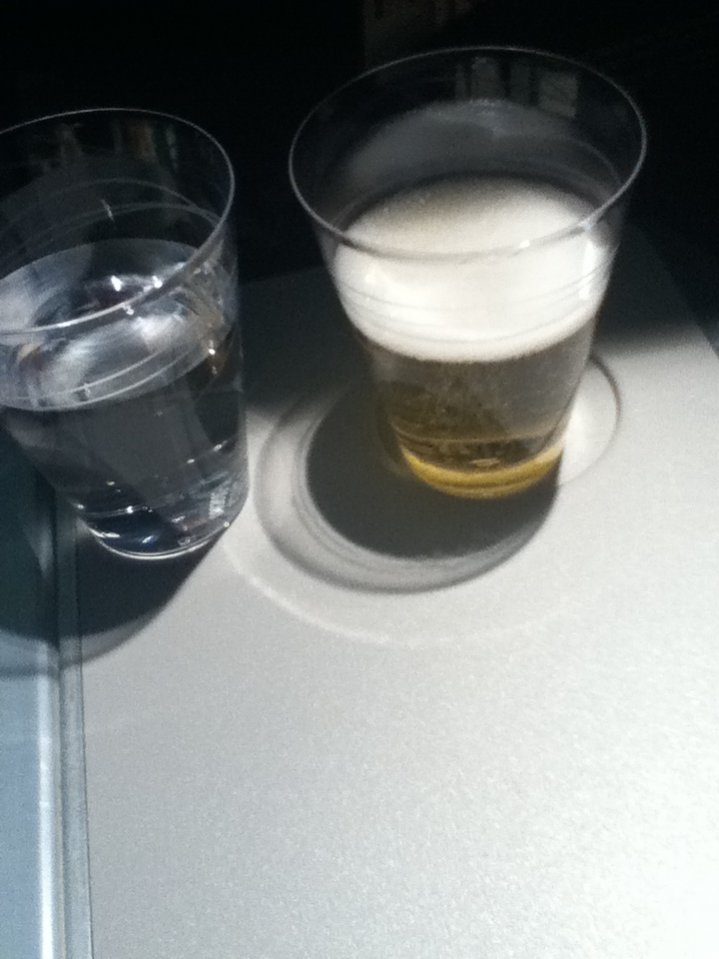 Det är synd att dricka vatten på AF ombord för det finns ju vin till allt, därför vattenflaskan kommer först med maten. På SK pga tighta utskänkningsregler får man servera vatten, det finns i fickan, men vinet kommer nog endast när man lämnat svenska luftutrymmet.