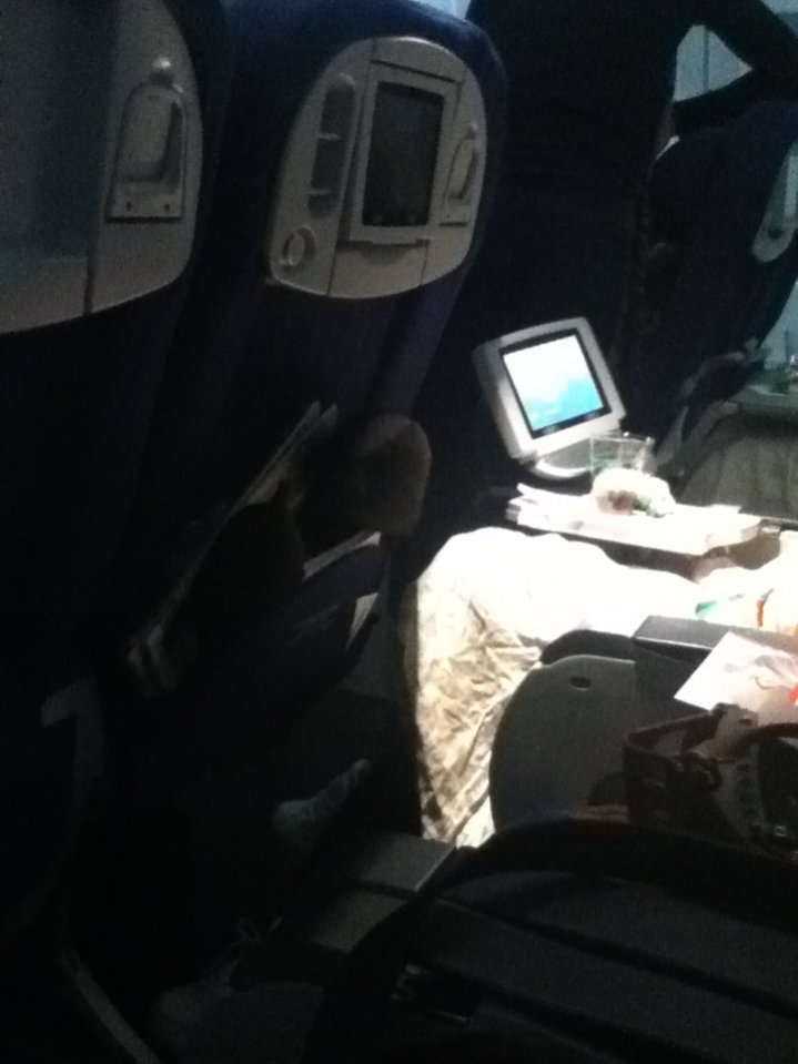 Flyget var lång nog för att hinna med exakt 3 filmer. Och med en frukost/mellanmål som serverades emellanåt gick tiden väldigt fort förbi.