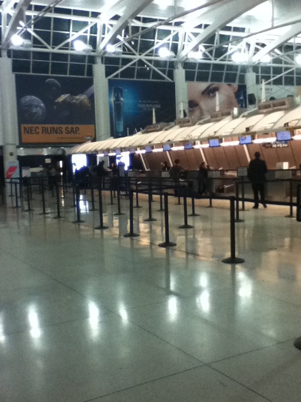 Går fort till min gate och upptäcker att passet och boardingkortet saknas! Det var som sjutton, jag hade ju allt i duty-freen. Hela gate-gänget garvar åt min kommentar om världens dyraste chocklad. De erbjuder hålla koll på min väska medans jag rusar tillbaka till butiken och hämtar mina handlingar. I butiken finns ingen, men passet ligger på disken.