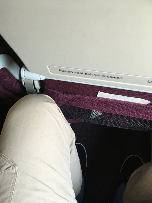 Det finns lite smått och gott men tar istället upp dator och rullar igång en film. Efter 2/3 av filmen står en loungevärdinna framför oss. Så här let det: