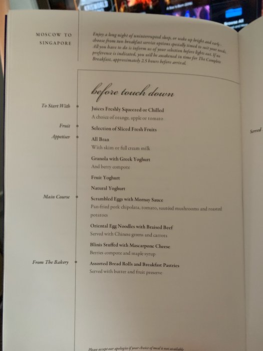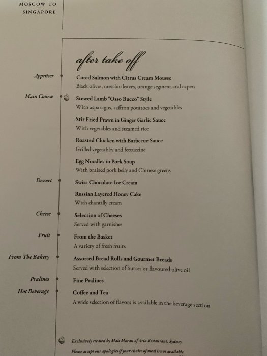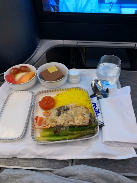Eftersom vi lyfte från Changi så fanns ju möjligheten att boka book the cook, sagt och gjort och hummern beställdes!