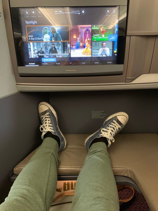 Slår mig ned på min plats 11D som jag hade lyckats knipa ca 90h innan avgång efter ha försökt i ca 2 veckor innan varje dag. Det var värt att hänga på låset varje dag och få rad 11 med det extra benutrymmet.