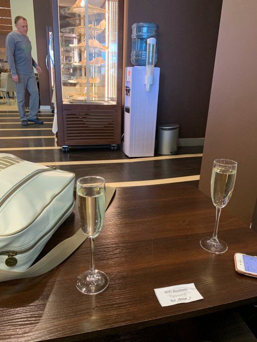 Eftersom vi var sena så blev det ingen längre tid som spenderades i loungen, vi hann ta varsitt glas mousserande och utnyttja deras värdelösa wifi.