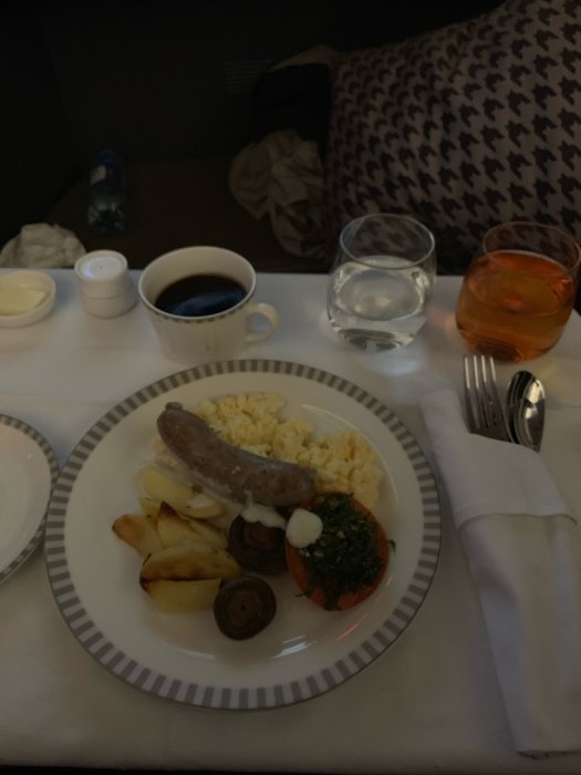Jag hade förbokat scrambled eggs with mornay sauce, detta var den bästa rätten på denna flygning.