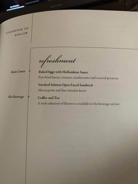 Det var en behaglig flight mellan ARN-DME, jag hade via deras nya tjänst förbokat min rätt som var bakage ägg, bacon med hollandaisesås.