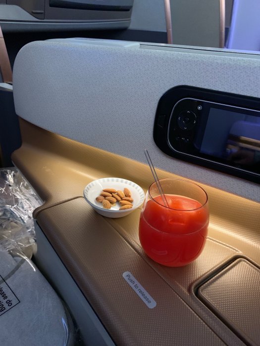 I samband med att välkomstdrycken serverades så tog dom även beställning på vad man ville ha för när vi väl kommit upp i luften, livets stora fråga, en singapore sling eller fortsätta på champagnen?