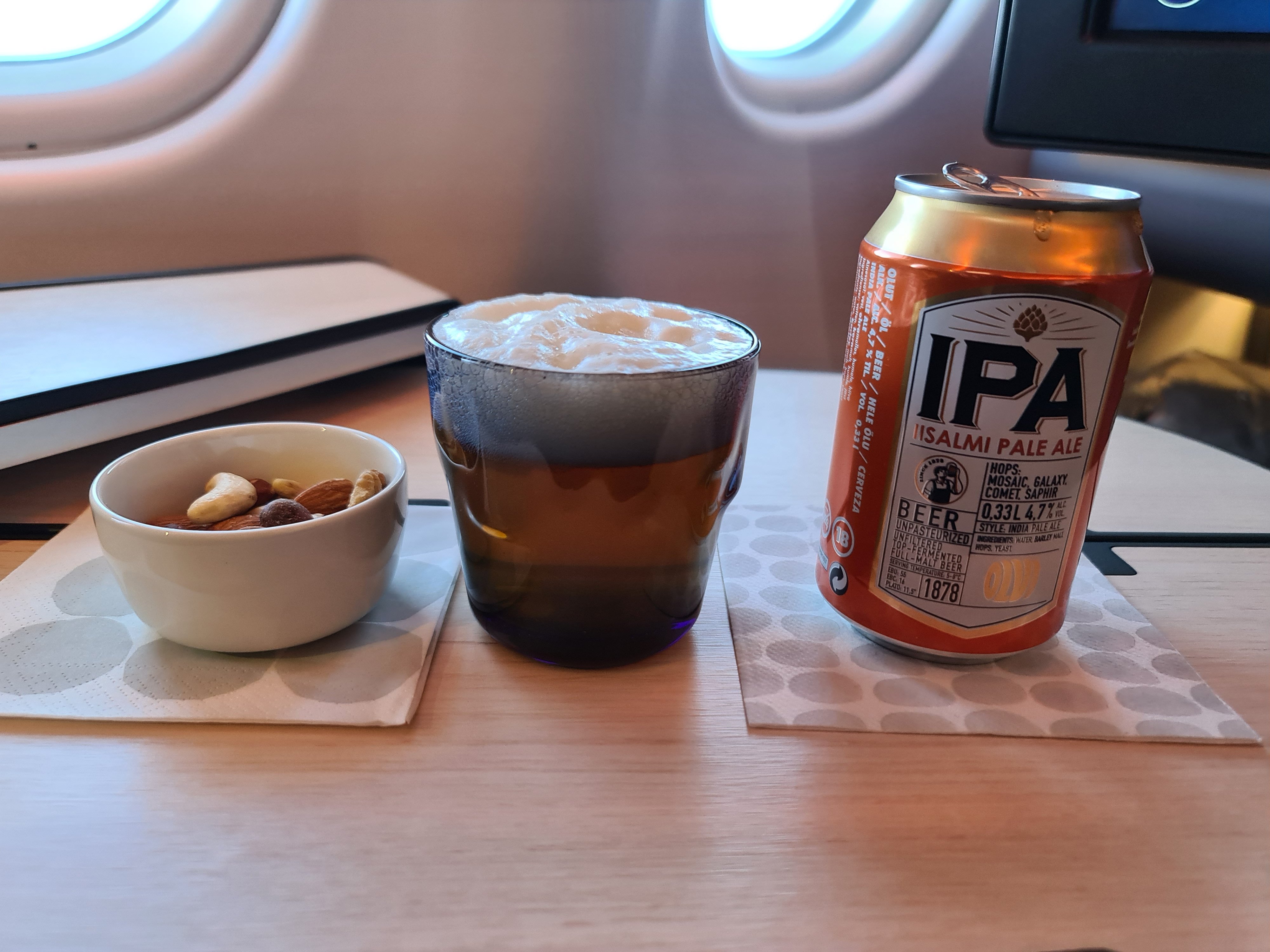 Börjar med en rätt tråkig ipa, hur kan Finnair ta bort blåbärsölen de hade tidigare? Att servera nötter som är 5 grader varma borde det vara skottpeng på.