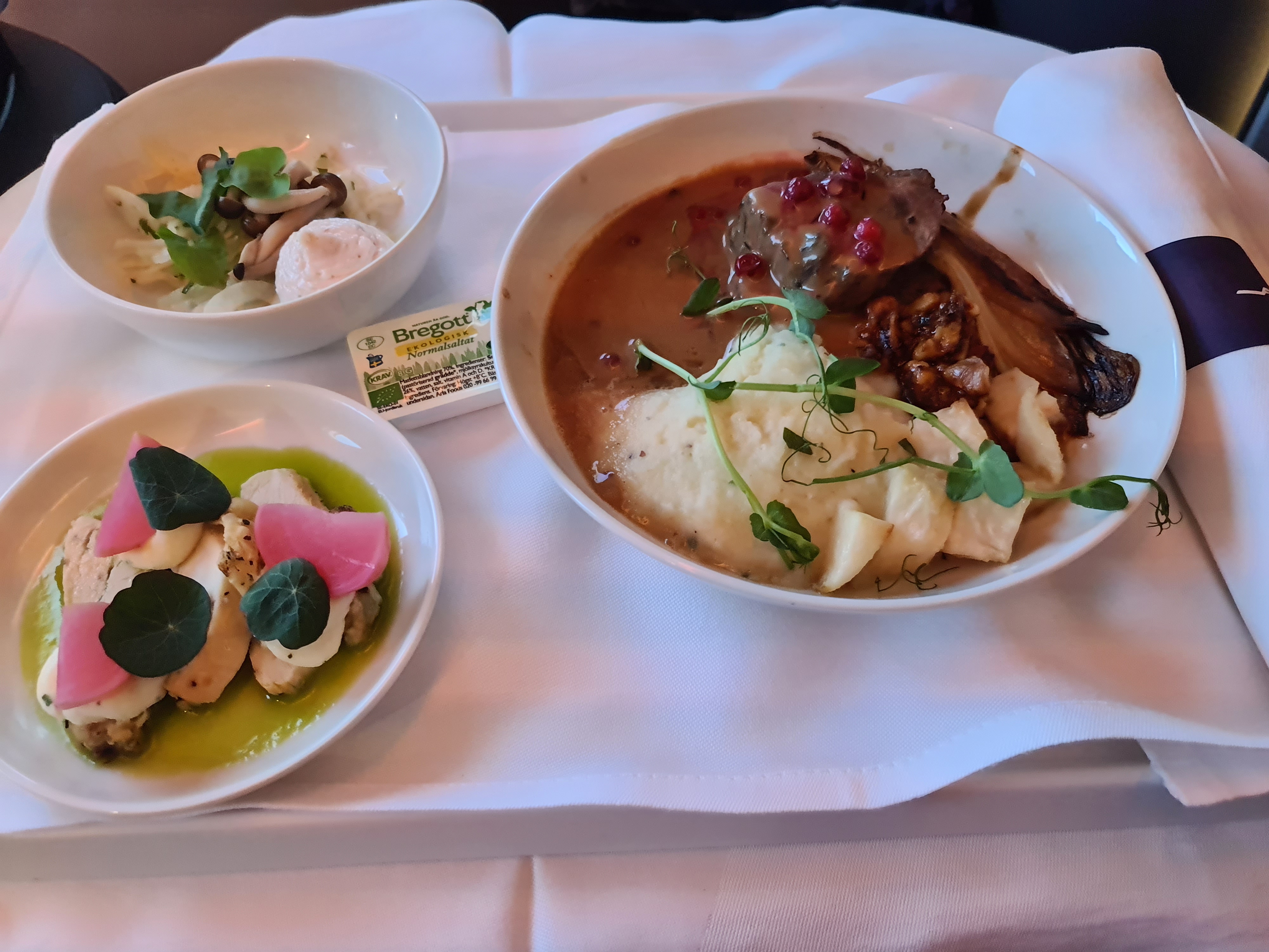 Till huvudrätt valde jag beef cheek som var bra. De två smårätterna kom in utan att jag bad om det. Presentationen är trevligare än hos SAS, men varför kommer varmrätt och förrätt (kall) samtidigt på en bricka? Köttet smakade bra.