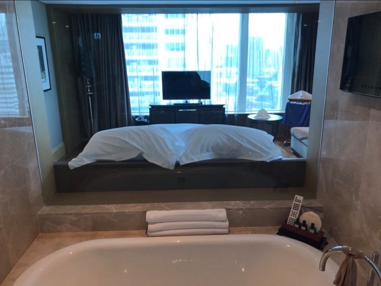 Nu har vi flyttat till svit med gigantisk balkong, jacuzzi och parkutsikt