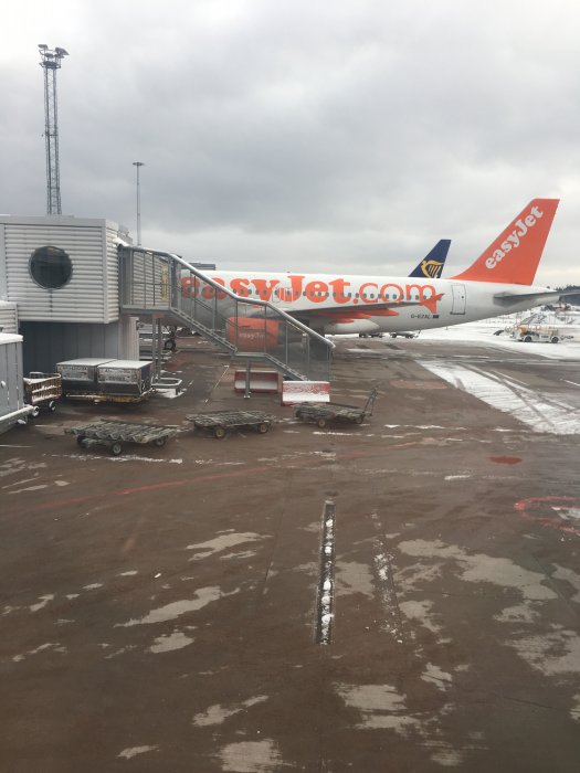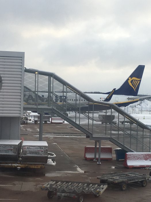 Gissningsvis pga all snö som kommit och att det varit problem att landa på Skavsta pga detta.Någon som vet vad denna Ryanairkärra gör här på Arlanda T2? Lockande är 11.30 och sitter i BA lärran bredvid