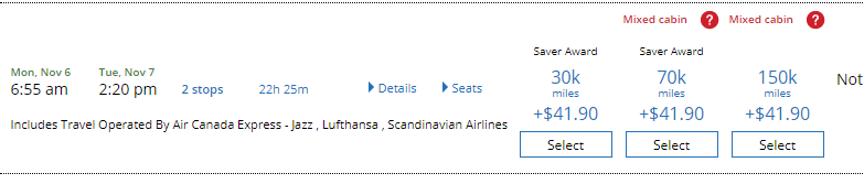 Hittade enkelt resa dit den 4e nov (sista leg i ekonomi) och hem den 7e med första leg i ekonomi.