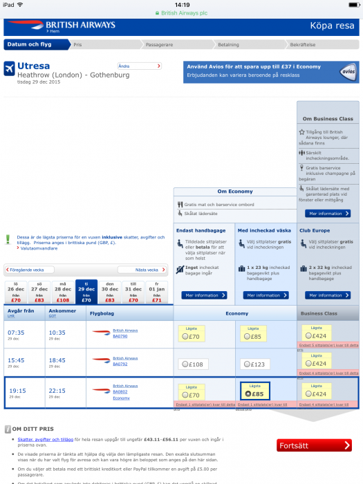 - I vilken kabinklass? Economy