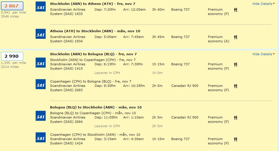 Två förslag i SAS Plus för stadsresenärer (med bra poängintjäning som bonus):