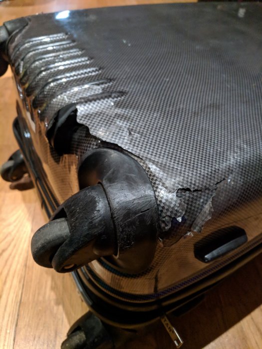Du får gärna hålla oss uppdaterade på hur de löser detta. Onekligen är ju väskan totalförstörd det kan de inte snacka sig ur och det är inget "normalt slitage" eller "normal hantering" som vissa andra bolag vill få liknande saker att vara. PING @simon_says91