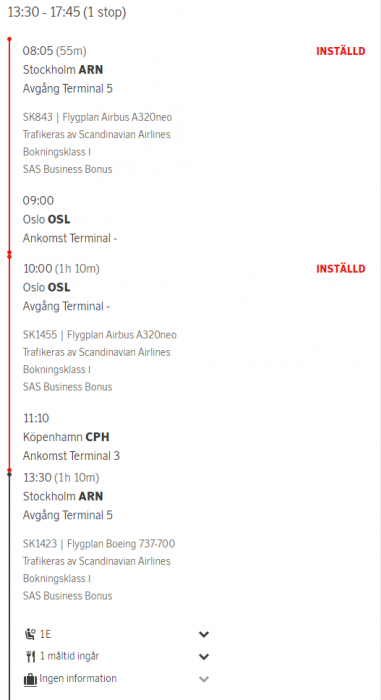 Har fler av gångar med samma svar trotts att det inte finns avgångar på SAS hemsida, skickade skärmbilder