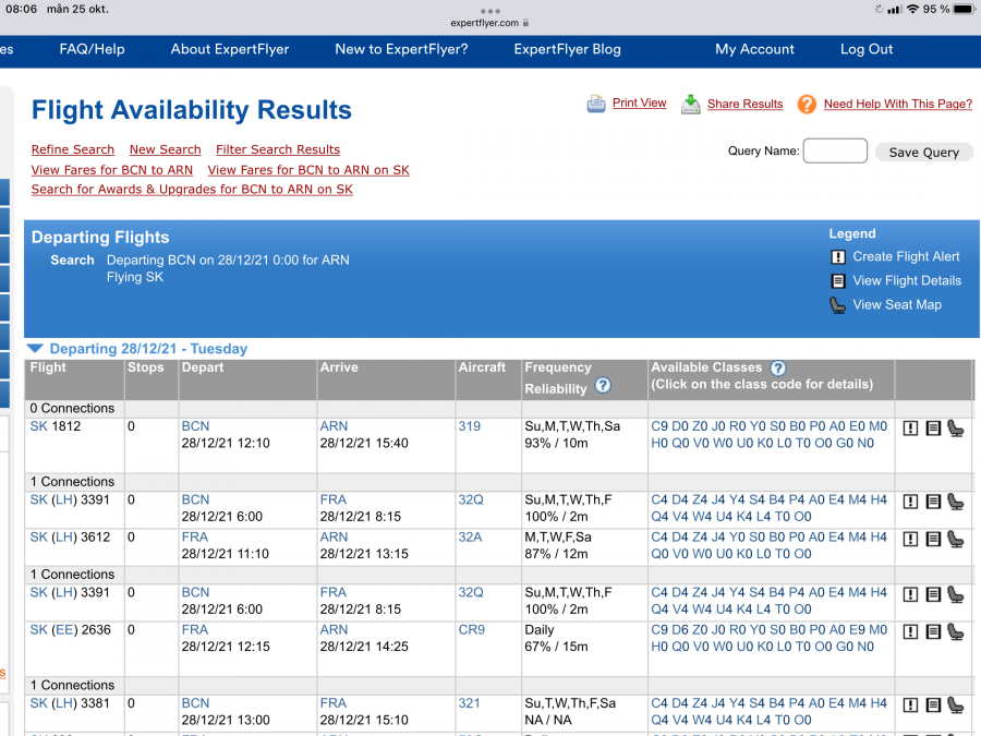 Avgången är den 28 dec och gäller SK1812 mellan BCN-ARN och är en A319.
