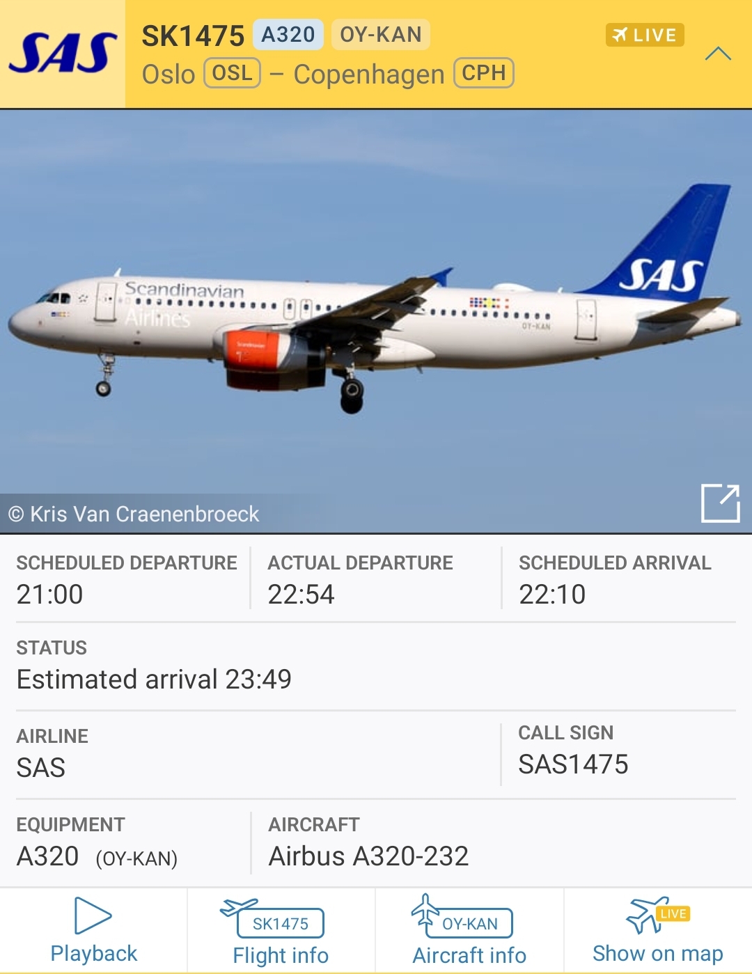 Inget speciellt. Jag skippade att äta middag vid 02. Väntar på frukosten som borde komma vilken minut som helst nu.Trevlig resa! Ni verkar just nu vara sena enbart 23 min. Bra jobbat av piloterna. Hur är det ombord? Några speciella måltider/drycker som erbjuds eller är det som vanligt?