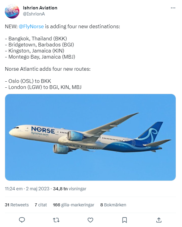 Stämmer bra, brukar finnas en tanke bakom då inget flygbolag ”chansar” och väljer en destination från en karta om du tror det. Sedan ökar det ena flygbolaget sin flotta medans den andra minskar.Fly Norse drar igång Bangkok också, så någon tanke bakom det bör de ju finnas än en ren chansning att dra igång Bangkok bara sådär.