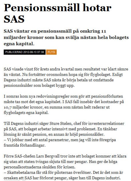Så kommer kontrakt att rivas och sen förhandlas om med nya aktörer, det antar jag iaf. och i ett vipps så har någon köpt grisen i säcken, för jag tror nog inte att SAS har den yngsta skaran direkt på "plattan" i historen.