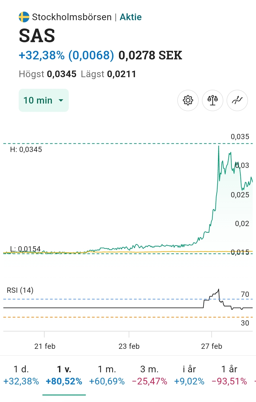 SAS -21,86% hemsida för Investor Relations framgår att sedan 11 oktober i år så är det inte längre möjligt att ingå i SAS aktieägarprogram genom att köpa nya aktier i bolaget.