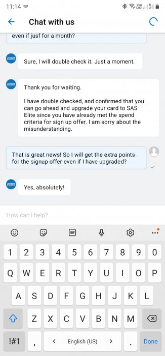 Ja, kanske bäst att jag pratar med kundtjänst. På ett sätt så får de ju en kund som använder kortet frekvent och uppnår spend, sen uppdaterar kunden till elite kort vilket gynnar de i längden tänker jag..