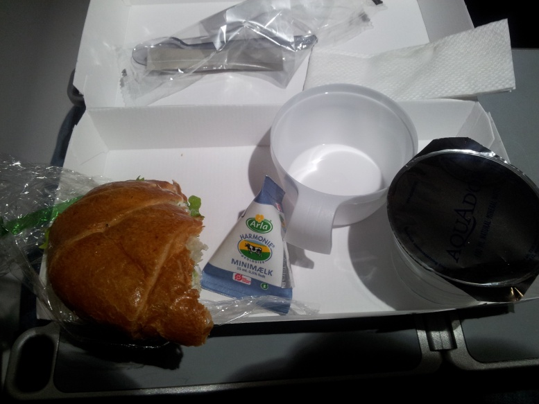 MD stod på schemat och jag hade självklart valt rad 1. Vi behövde avvisning och snart därefter lyfte vi tyst och kraftfullt mot CPH. Väl uppe i luften serverades en croissant med ost och skinka som serverades med apelsinjuice och kaffe/te. Dvs frukost nummer 3.